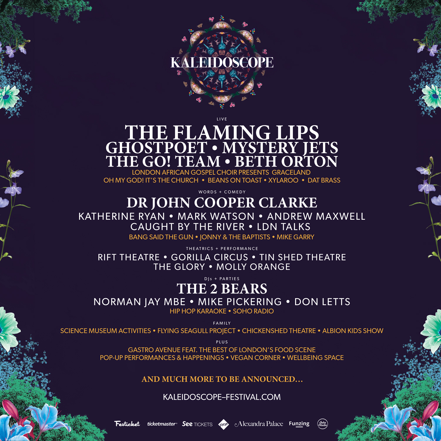 Kaleidoscope Festival will see a bill comprising of music, theatre and comedy and will be taking place at London’s Alexandra Palace on July 21 and will also feature comedy from the likes of Mark Watson and Katherine Ryan.