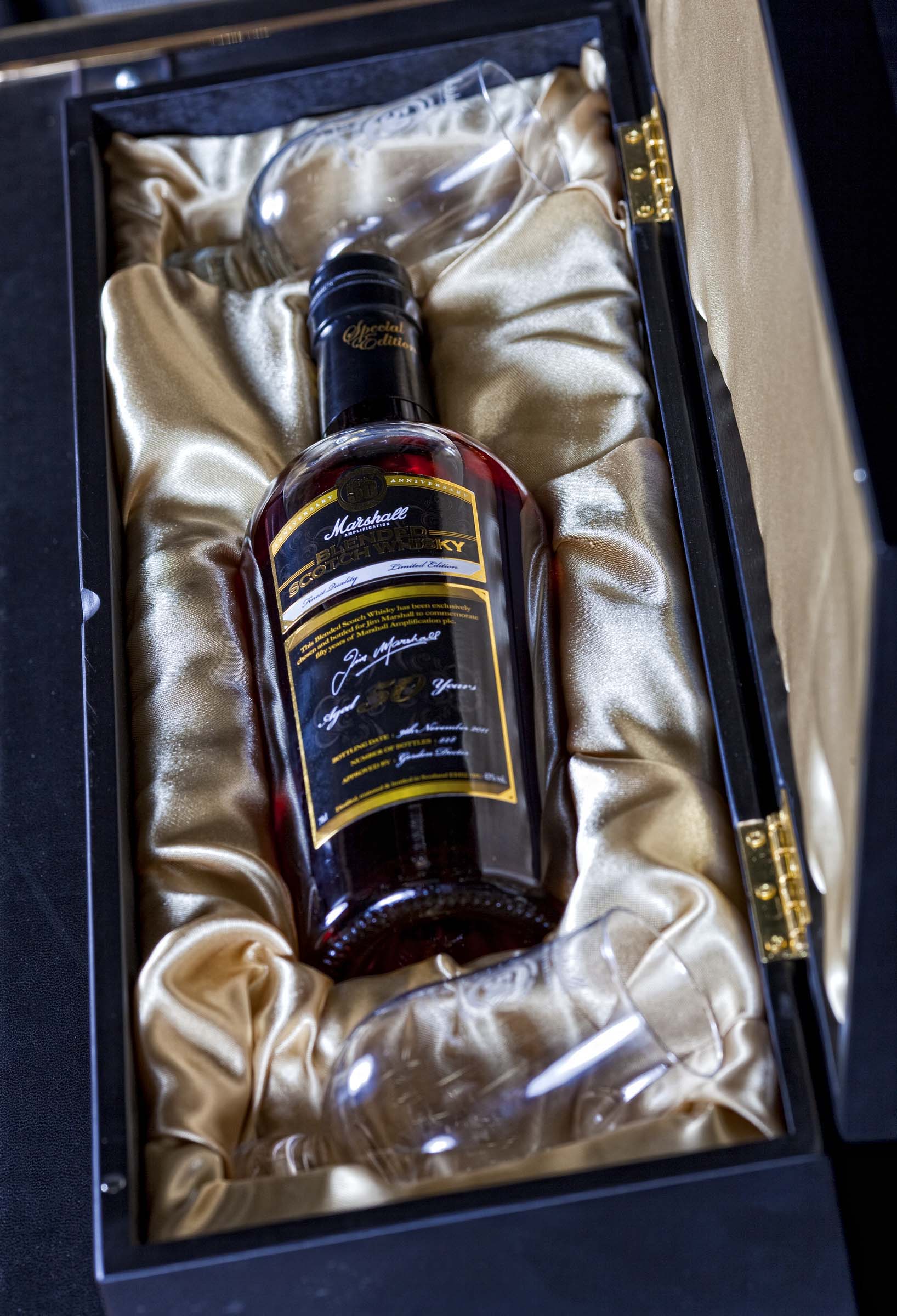 This Marshall whisky comes with a price tag which mirrors this rare collaboration between two popular brands and the exceptional quality of this unique whisky. At £420, the bottle is beautifully presented in a silk-covered anniversary box and comes with two whisky goblets bearing the signature of the legendary Jim Marshall – the original ‘father of loud’.