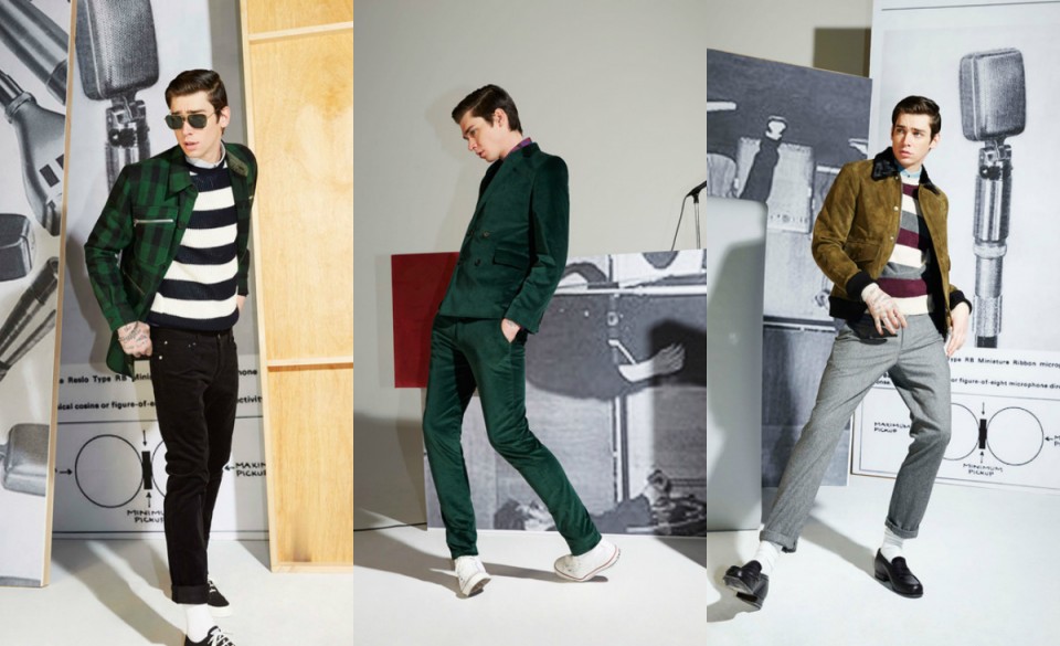 A large focus on knitwear, corduroy and rich jewel tones is prevalent across their A/W 14 collection. Heavy, warm tones and textures are juxtaposed against typically 60s silhouettes where the accessorizing is truly what ties these looks together. The menswear collection stands out the most with a dark pine green velvet suit stealing the show from the demure, loafer clad womenswear styling shots – pictured below. If it’s a new you “back to college” wardrobe you’re after, you truly can’t go wrong with this dangerously cool duo. Maison Kitsuné’s mens and womens collections are available online at Matches Fashion, Net-A-Porter and Mr Porter.