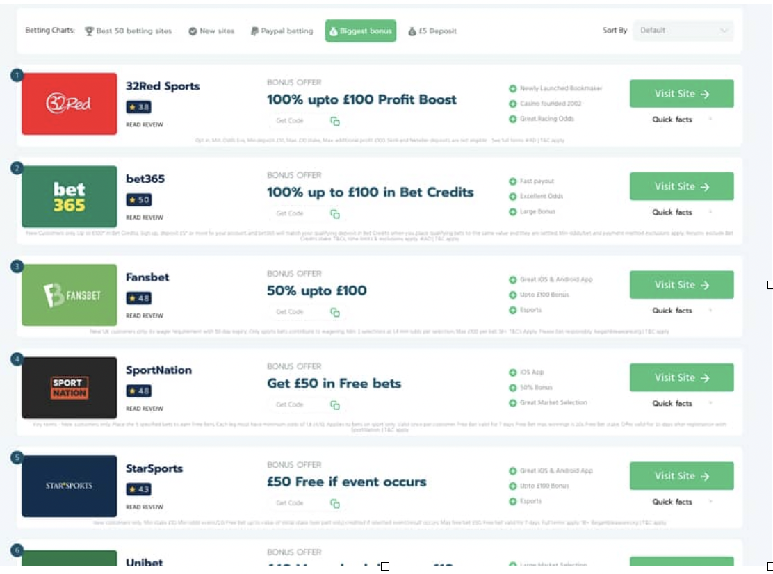 After all, promotions and bonuses are the best ways to improve your chances of winning, and there’s nothing better than playing with free money! Below is a list of the new and existing UK bookmakers that currently offer some of the largest bonuses on their sites: