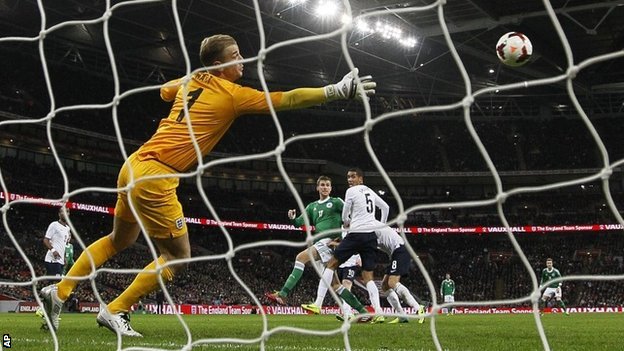 From that initial phase of play onwards, Germany looked much more comfortable offensively and pinged the ball around the edge of the final third with ease as Gotze, Kroos, Reus and Kruse found their passing range and led to Germany getting their first corner of the match. Capitalising on England’s inability to clear the ball, Germany won a second and third corner – not without forcing an exceptional save from point-blank range from the much improved Joe Hart but it was on the third corner that England came unstuck. A superb in-swinging delivery was met strongly by the towering Per Mertesacker who glanced his header past a hapless Joe Hart to give Germany a debatably deserved 1-0 lead going into half-time.